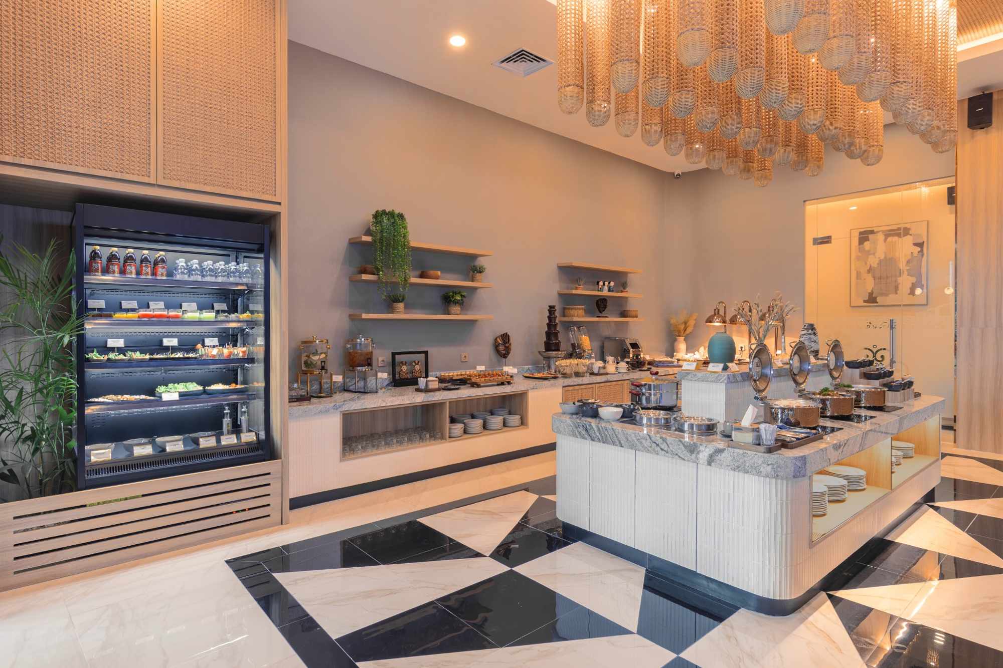 Inside the lounge, guests can enjoy the high culinary standards found across Blue Sky’s Jakarta network. The menu brings together international and locally inspired dishes, including Selendang Mayang, complemented by all you can eat buffet style dining that features Blue Sky’s well-known signature mantau. A variety of live-cooked dishes that bring the culinary experience to life are also available throughout the day. A dedicated coffee corner serves Ippolito, Blue Sky’s signature artisan coffee, while the Healthy Corner offers cold pressed juices alongside a selection of soft drinks. The lounge also includes a private VIP room, available for an additional fee, providing an elevated level of privacy and comfort, as well as restroom and prayer room (mushola) facilities designed to support both comfort and spiritual needs.
