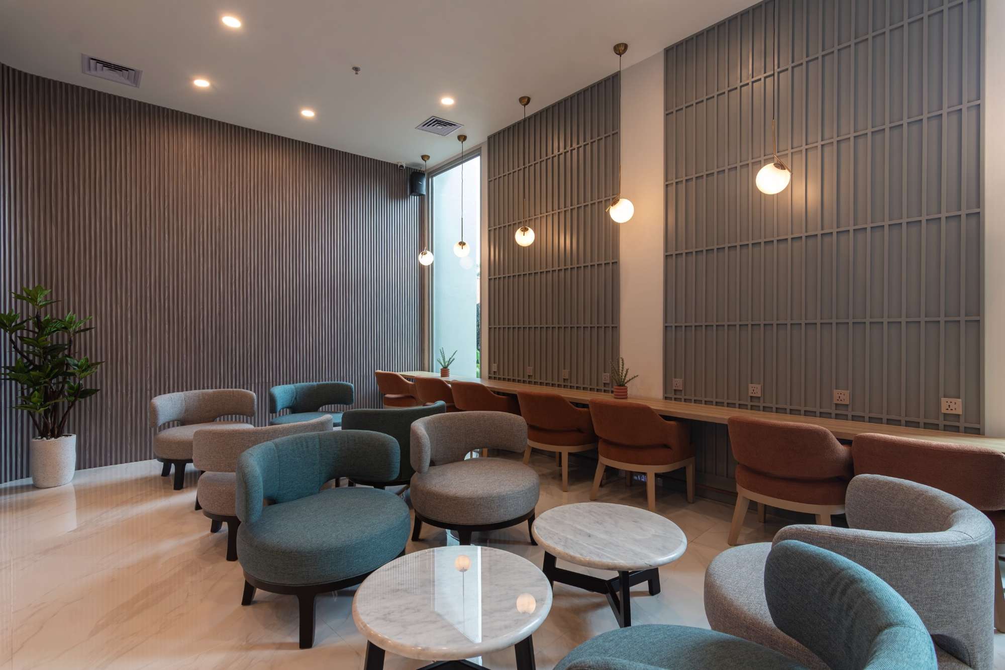 Located on Level 2 just past the check in area near the Spot Station, the lounge is conveniently positioned for departing passengers. Spanning 350 square meters with seating for up to 76 guests, the space features a sleek, modern design that creates a calm and refined environment before departure. Clearly separated non-smoking and smoking areas ensure comfort and choice for all visitors.