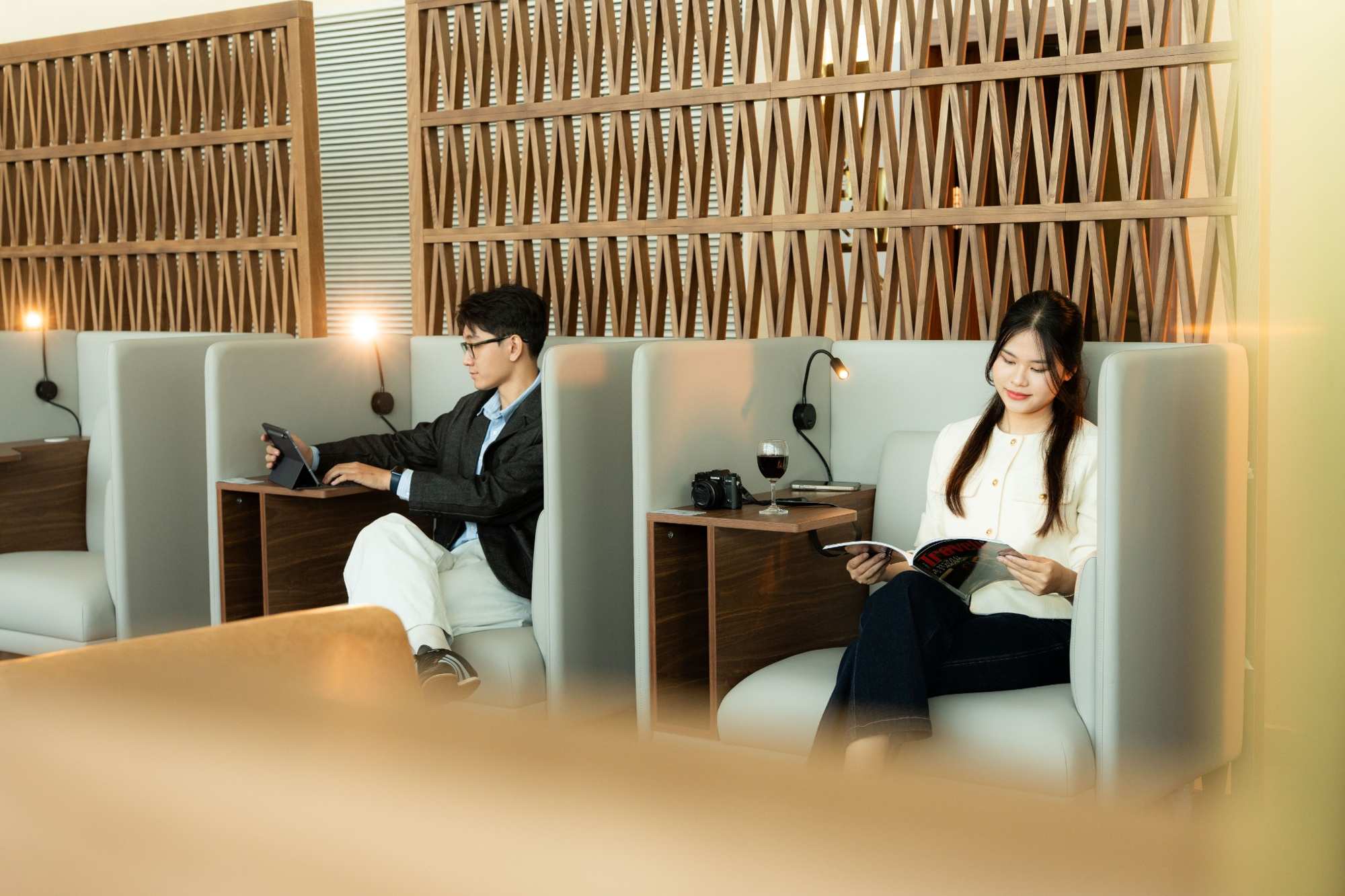 With 32 years of experience delivering products and services that reflect Vietnam’s authentic values, SASCO has combined its expertise with the global airport experience specialist Airport Dimensions to transform the Rose Business Lounge into a contemporary and refined space. The lounge is elegant, modern and deeply infused with Vietnamese cultural aesthetics while offering a world-class environment for today’s discerning traveler.